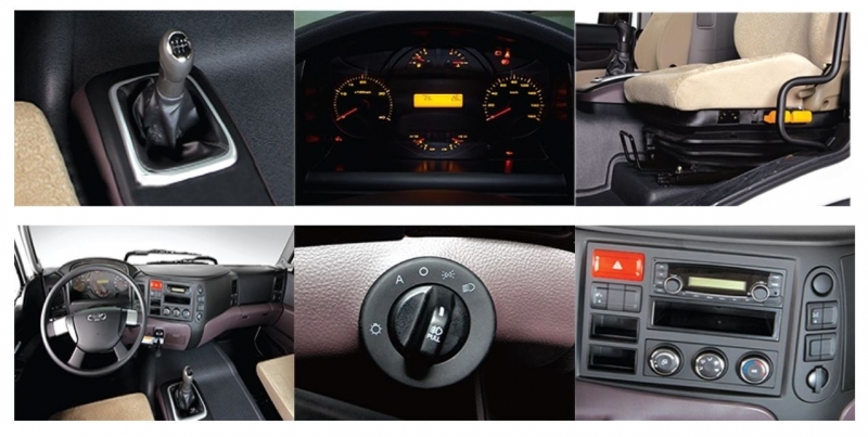 Trang bị đầy đủ tiện nghi như: máy điều hòa công suất mạnh, hệ thống âm thành đài FM đầu CD thẻ nhớ USB, cabin xe còn được thiết kế bố trí các chi tiết bảng điều khiển vô cùng thông minh giúp lại xe có thể vận hành điểu khiển trong thời gian lái xe mà vẫn an toàn.